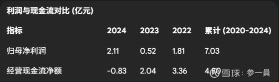 但风险同样存在。在近年的业务扩张期,其稳健性出现了恶化的迹象,表现为经营现金流显著落后于净利润的增长。2024年业绩高增的背后,是经营现金流的净流出,这一背离现象集中体现了其经营模式的内在脆弱性。
