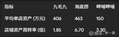 数据显示,九毛九的平均单店资产高达406万元,接近海底捞的水平,远高于呷哺呷哺,这表明其门店模型,无论是从面积、装修还是设备投入来看,都属于“重资产”类型,并不轻量。