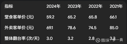 在价格策略上,公司主动下调了堂食和外卖的客单价,以巩固其性价比优势。虽然这在短期内对单店收入造成了压力,但公司通过维持约3.0次/天的整体翻台率,部分抵消了价格下降的影响。这一翻台率水平在行业横向比较中处于中上区间,反映了公司高效的门店运营能力。