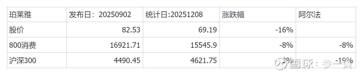 2)相对行业与股价反应:横向对比其他化妆品公司,行业普遍承受价格下行和消费疲软,但珀莱雅这一季的降价幅度和费用投入都偏激进,体现出“以价换量+砸费用换结构”的主动调整。结果是:股价自 9 月以来绝对跌约 16%,显著跑输行业和大盘,本质是增长预期下修叠加估值从“高增长档位”回到普通档位。