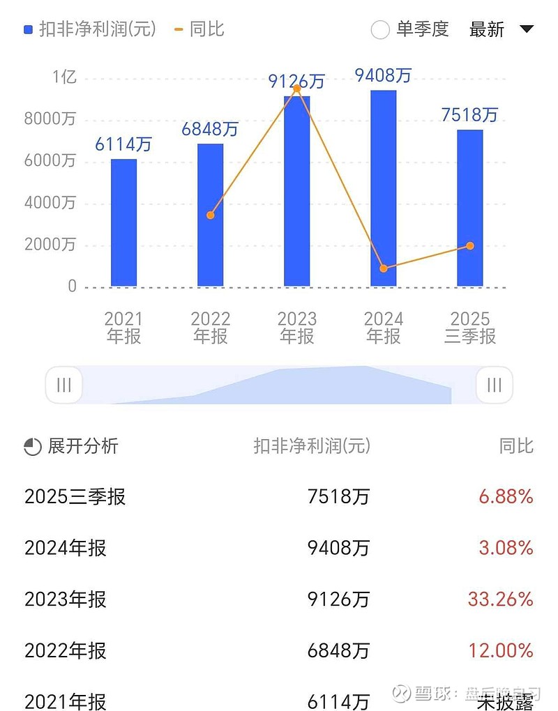 公司近五年净利润持续增长,说明生意还不错,2023年增长较快(33%),但2024年明显放缓到3%,需要关注2025年报增长情况。