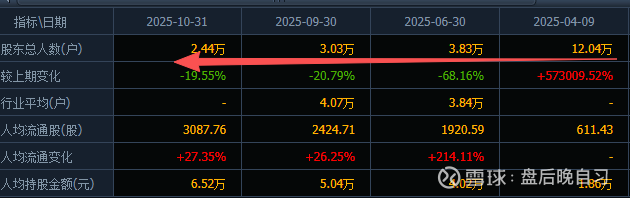 截至2025年10月31日,泰鸿万立股东户数为 2.44万户,较上期大幅减少19.55% ,人均流通股增至3087股,环比增幅27.35%。从上市以来股东户数连续下降,筹码正从分散的散户手中向核心资金聚集,为后续股价表现减轻抛压。