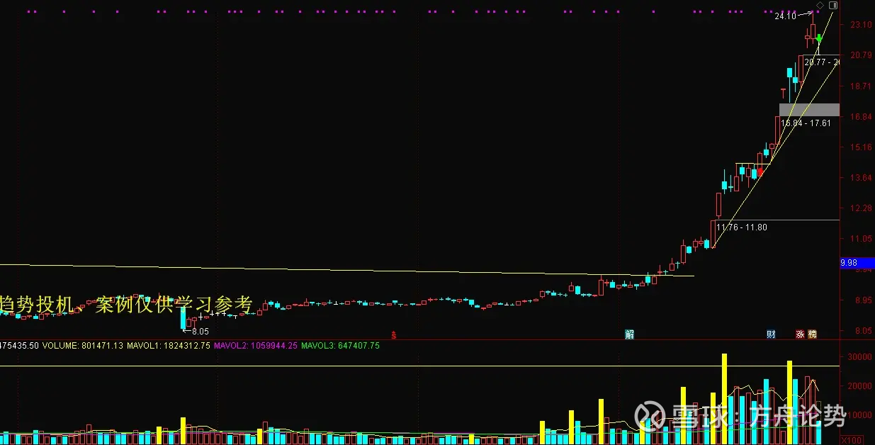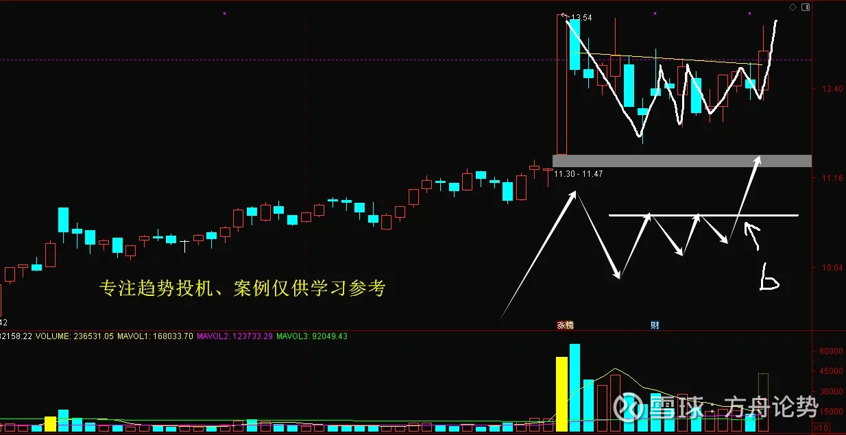 天量翻倍成功模型,天量后突破b买点,趋势线破位出局