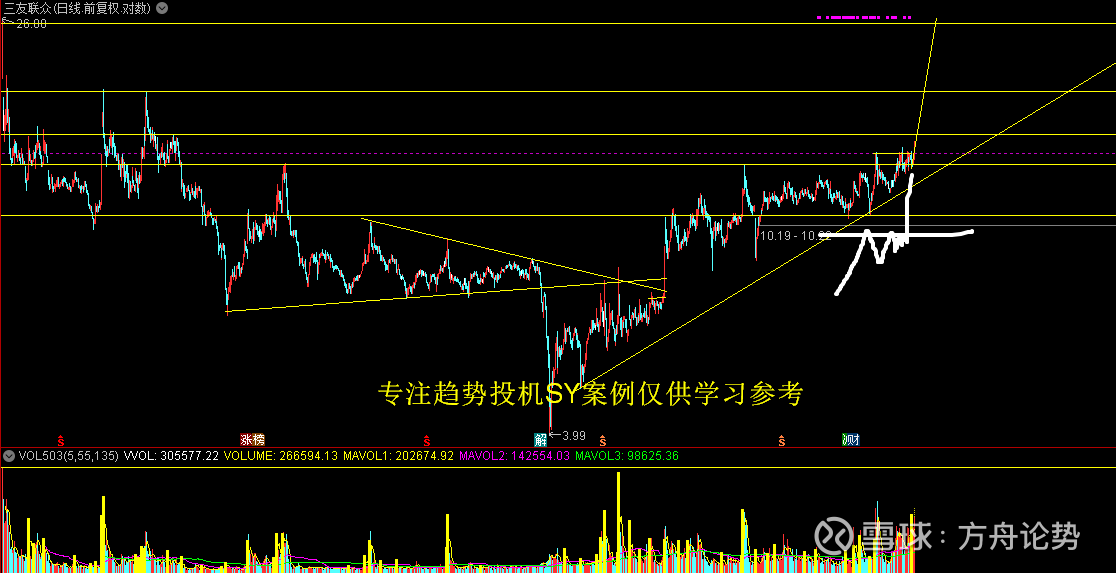 让ai给出定义吧根据提供的三友联众(股票代码未明确)日线图表信息,结合技术分析逻辑,以下是对该股近期可能形成的攻击形态的定义及解读: