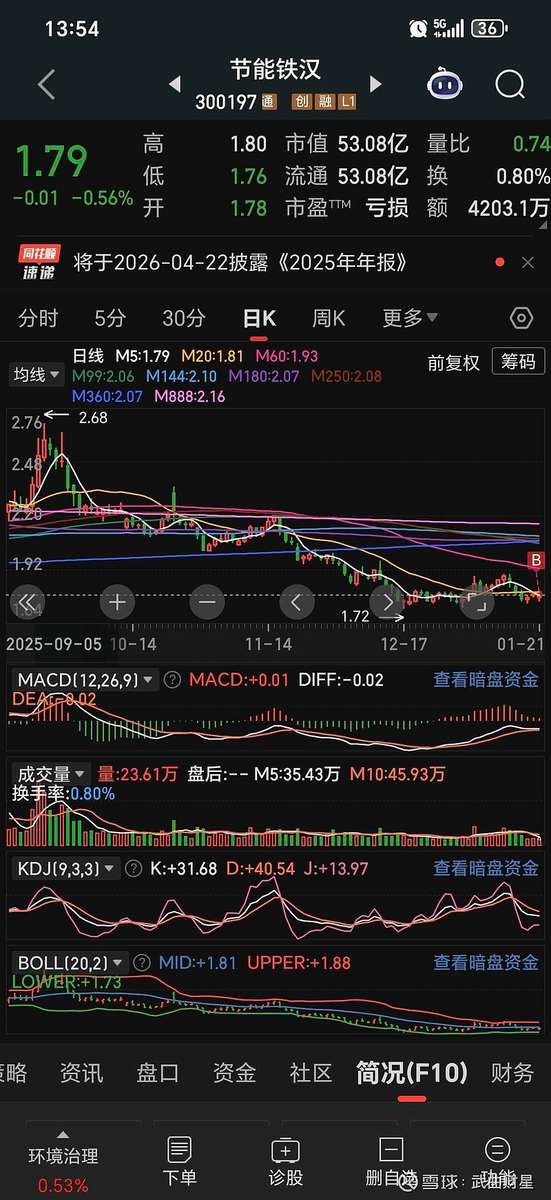 ,生态环保龙头股,虽然是老登股,奈何价格便宜