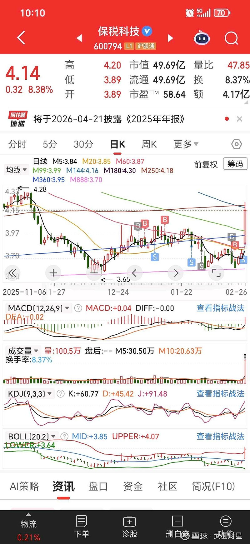$保税科技(SH600794)$