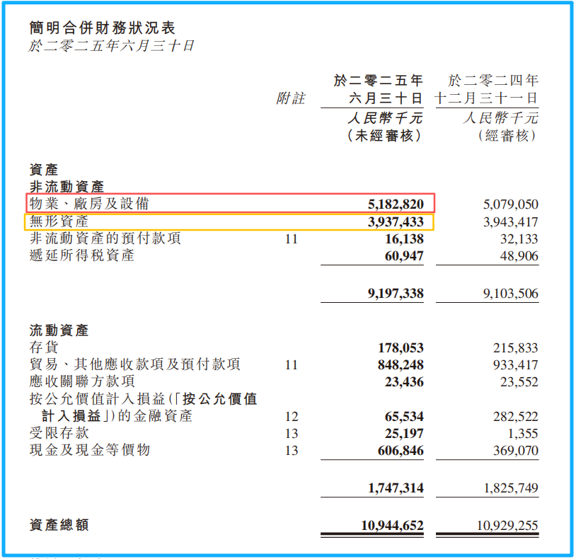 现在问题来了,公司25H1财报里并没有显示“固定资产”和“在建工程”的金额(如有,请告诉我)。不过财报提到,公司“物业、厂房及设备”有51.83亿元(见下图红框)。那它是否就是固定资产+在建工程呢?我认为是,但不是很确定(另,24年财报有多处提到“在建工程”,但都没有说明)。