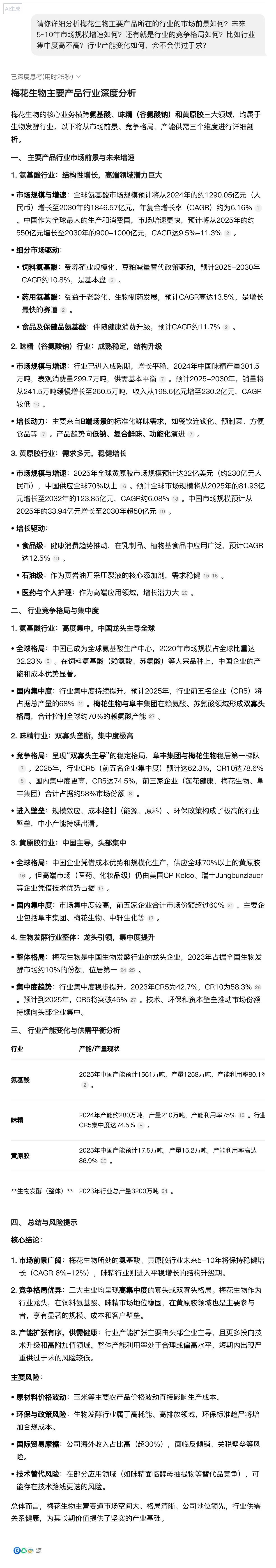 3、梅花生物主要产品所在的行业的市场前景如何?未来5-10年市场规模增速如何?还有就是行业的竞争格局如何?比如行业集中度高不高?行业产能变化如何,会不会供过于求?