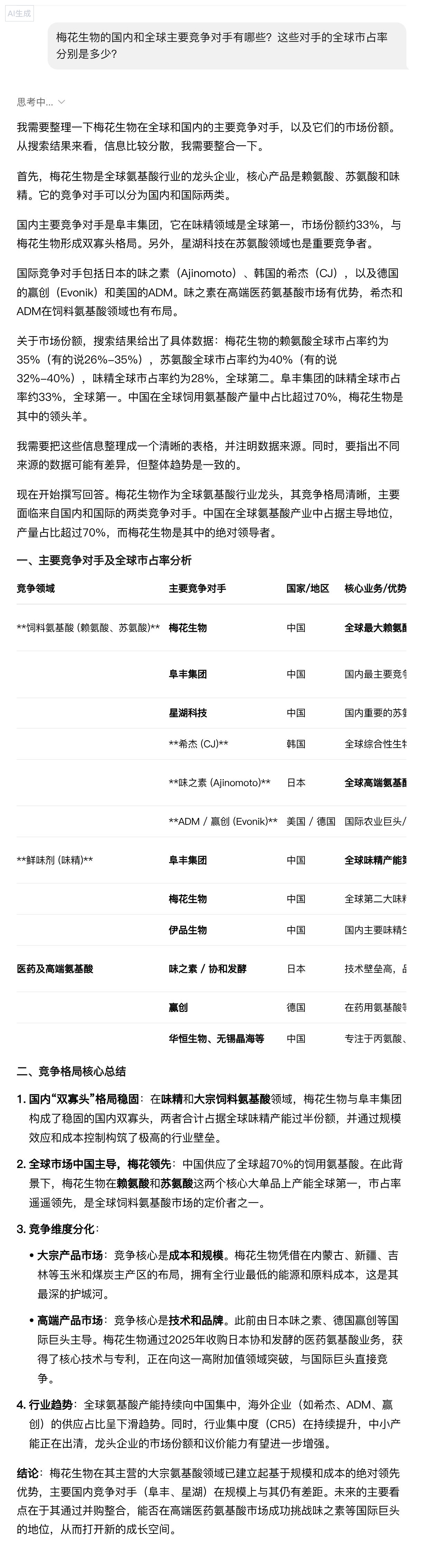 5、梅花生物的国内和全球主要竞争对手有哪些?这些对手的全球市占率分别是多少?