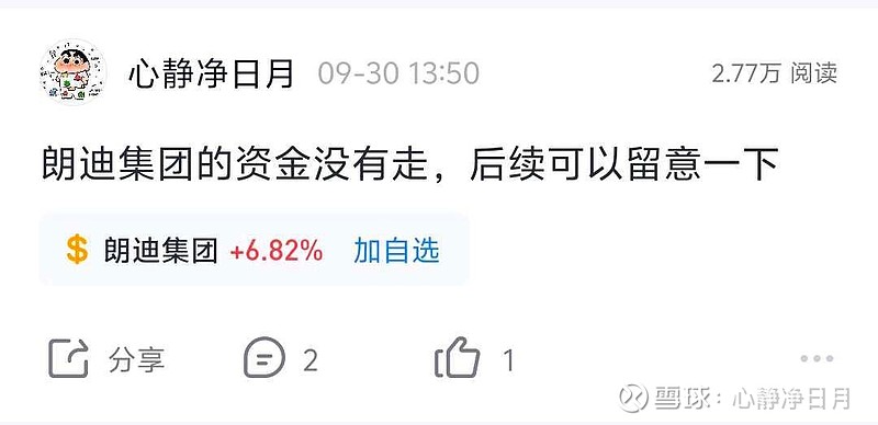 资金对于个股启动之后的走势影响占绝大部分,里面的资金属性决定了个股怎么走,走多久,简单说就是趋势连板或者几浪。当然天时地利人和也有一部分。只是想说,大方向没问题,里面控盘资金没有离场,那么就有机会继续做。$朗迪集团(SH603726)$只不过要留意的是,逆势拉升通常因为资金需要辨识度,因为辨识度才是让其拥有离场机会的条件之一。所以这种是需要利润垫的,拉高了再追不可取。要么5日线,要么点火就去追