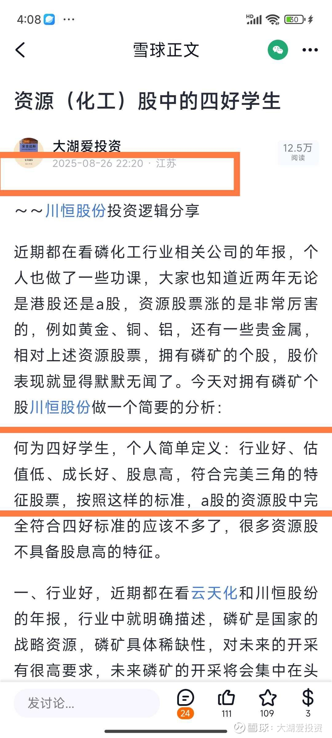 ,个人是在8月上旬开始研究磷化工的,当时认真看了云天化和川恒的年报磷矿石行业格局的表述,当时就感叹一句,中国还有这么稀缺的行业,30年的可采储量,4%的储量承担全世界40%的产量,当时就认为有磷矿的企业就是宝贝,基于这种思路,确定了云天化和川恒作为重点布局的对象。
