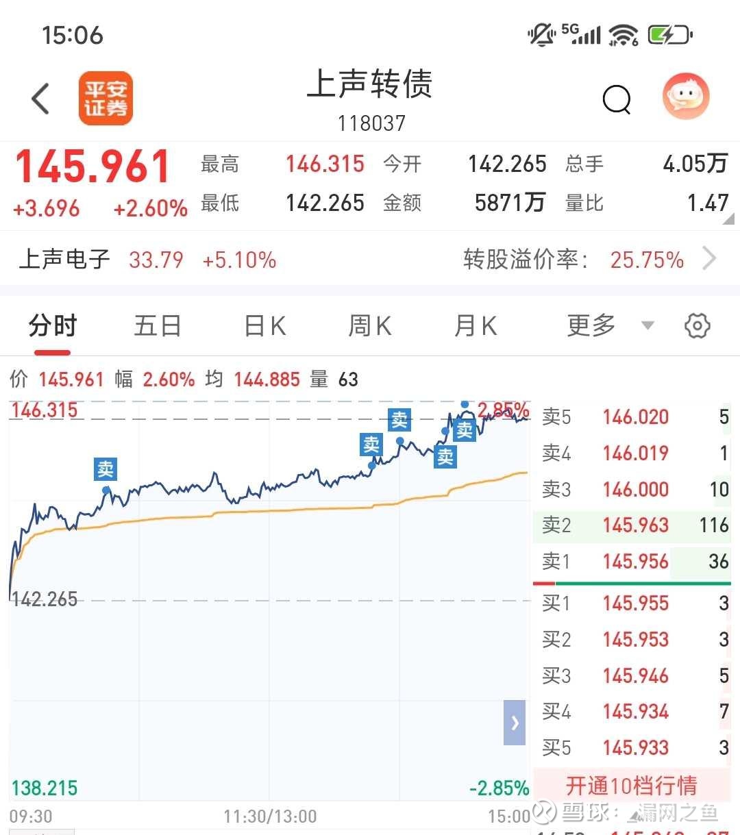 上声转债,减仓70张,已持仓54天,目前获利2100+,还剩20张;