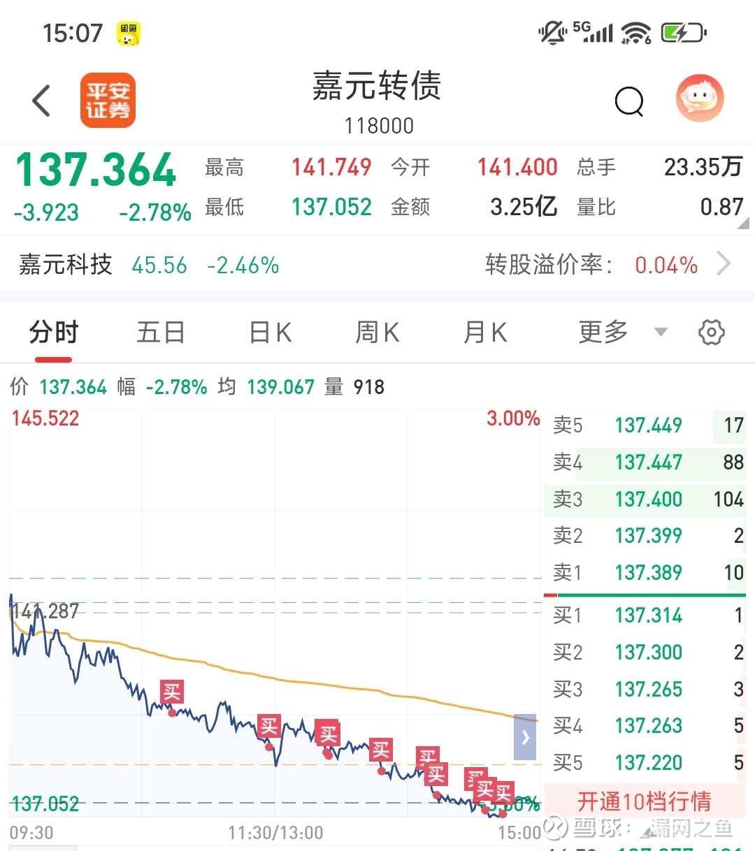 嘉元转债,建仓150张,本来想日内打野的,被套了;