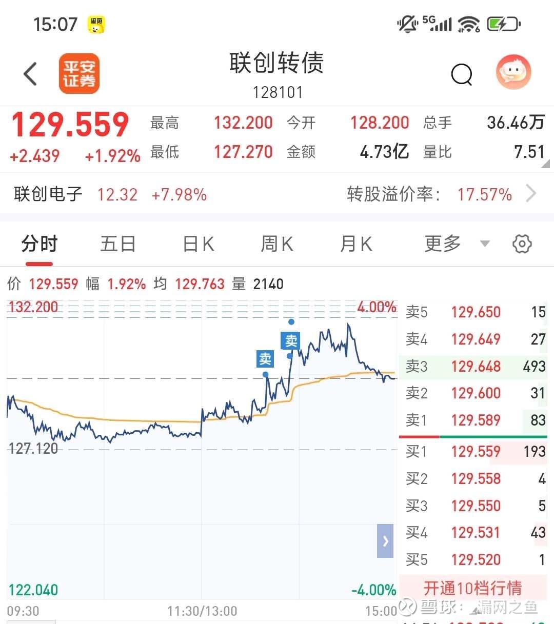联创转债,减仓60张,目前第一重仓,正股很强势,但转债尾盘回落了,今天盈利最多的转债;