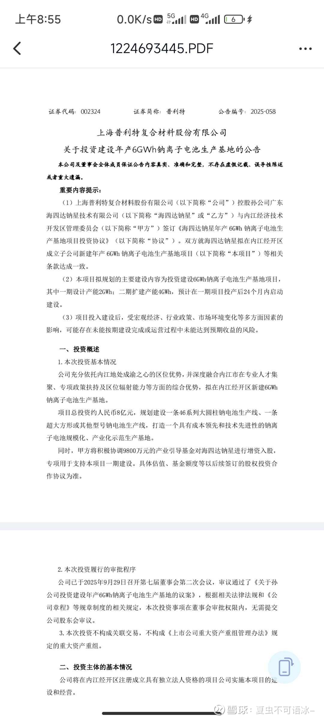 回复@股海无边-回头上岸: 内江去年已经引入了普利特建设一个6GWh的钠离子电池基地,但如果有意向大力发展钠电产业,则需要华阳的钠电龙头技术和全产业链能力。。。