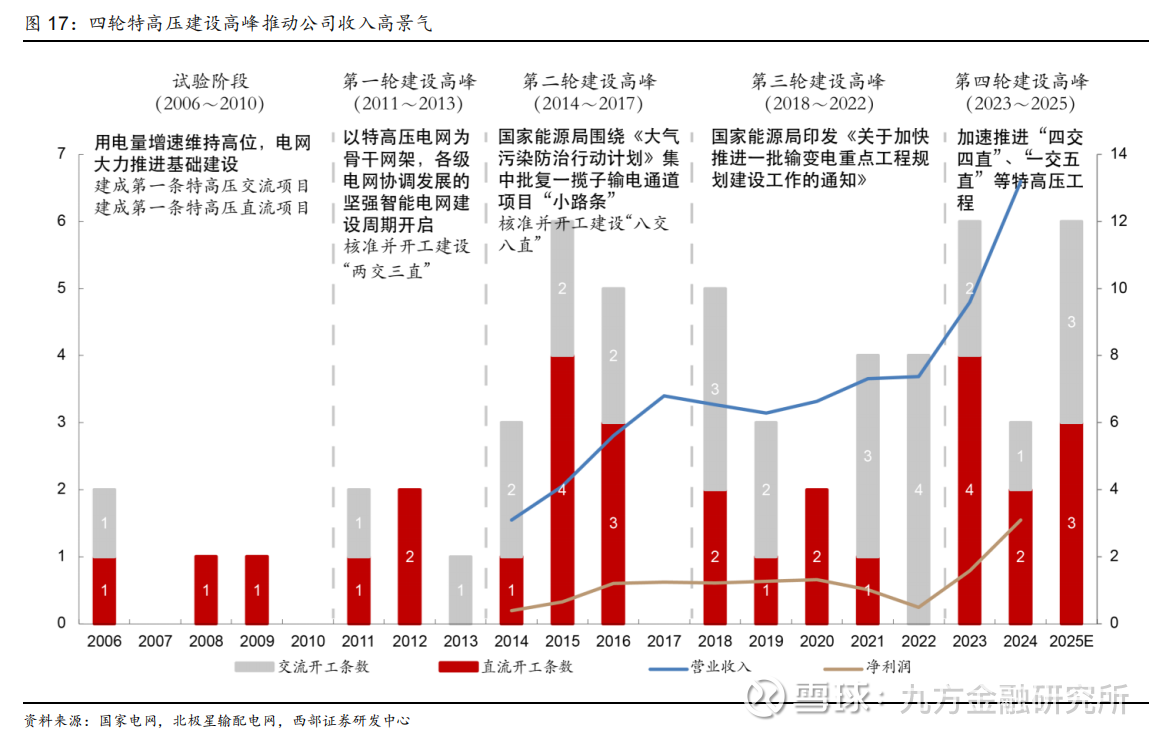 根据国家电网发布的信息,2025年国家电网进一步加大投资力度,全年电网投资有望首次超过6500亿元,实现6%以上的较高增速。通过复盘历史上几轮特高压建设周期,每一轮特高压建设高峰都给公司的订单及收入带来持续高景气推动。