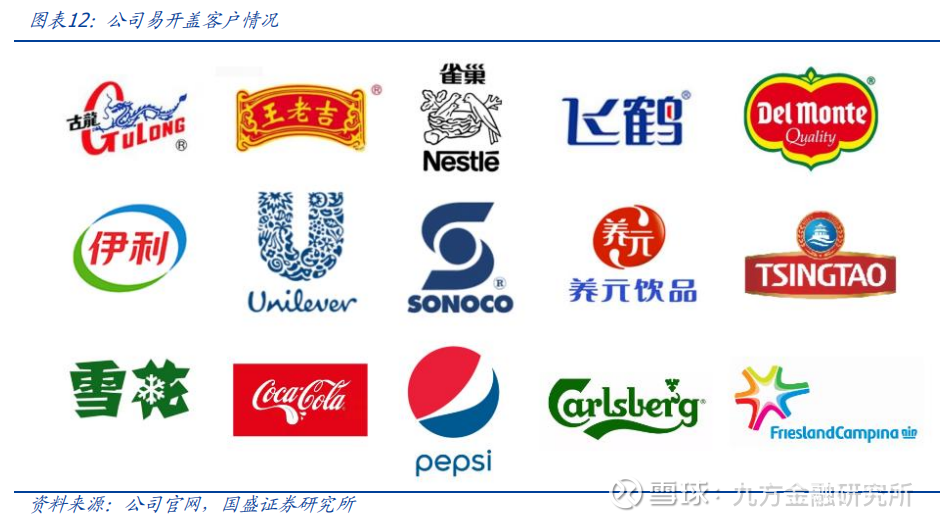 公司易开盖客户包括国内外知名消费品公司,海外收入占比持续提升。公司客户包括王老吉、雀巢、伊利、联合利华、青岛啤酒、可口可乐等知名企业。