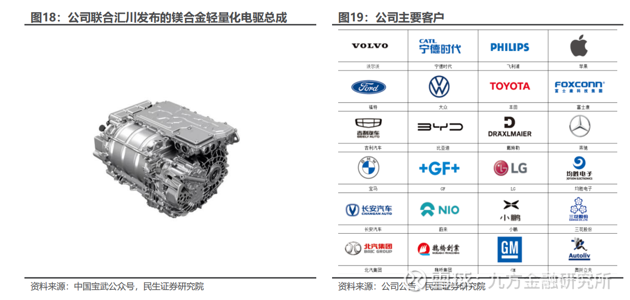 当前镁铝比历史低位,我们认为市场低估了当前成本压力巨大的车企对降本的诉求,更何况还是降本+性能优势结合的镁合金零部件。以镁铝比跌破1的2024年3月为基准点,目前已经过去了15个月,我们预计后续会陆续出现镁压铸企业获取汽车企业的定点并量产,迎接镁压铸的“奇点”时刻。