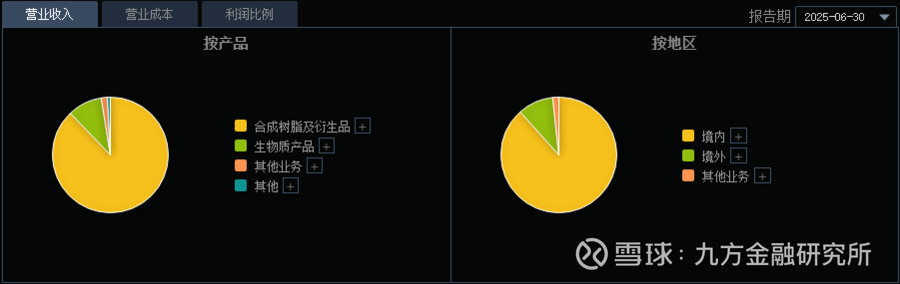 报告期内,公司在合成树脂类产品、先进电子材料及电池材料、生物质产品三类主要业务方面分别实现营业收入28.10/8.46/5.16亿元,较去年同期增长10.35%/32.43%/26.47%,实现销量39.18/4.01/13.41万吨。
