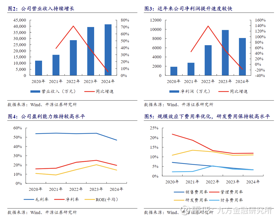 近年来,公司业绩高速增长,2021-2024年公司营收和净利润CAGR分别达35%和43%。2023年公司在失效分析与材料分析领域市场份额达7.86%,为中国半导体第三方检测头部企业。技术方面,公司检测分析能力覆盖3nm工艺制程,2024年H1先进工艺收入占比近八成,未来募投项目的落地将拉动先进制程收入规模进一步提升。客户方面,公司凭借海内外六个检测分析实验室,充分满足海内外客户的时效性要求,目前已服务包括高通、博通、长电科技等全球2000余家客户,形成牢固的用户黏性。