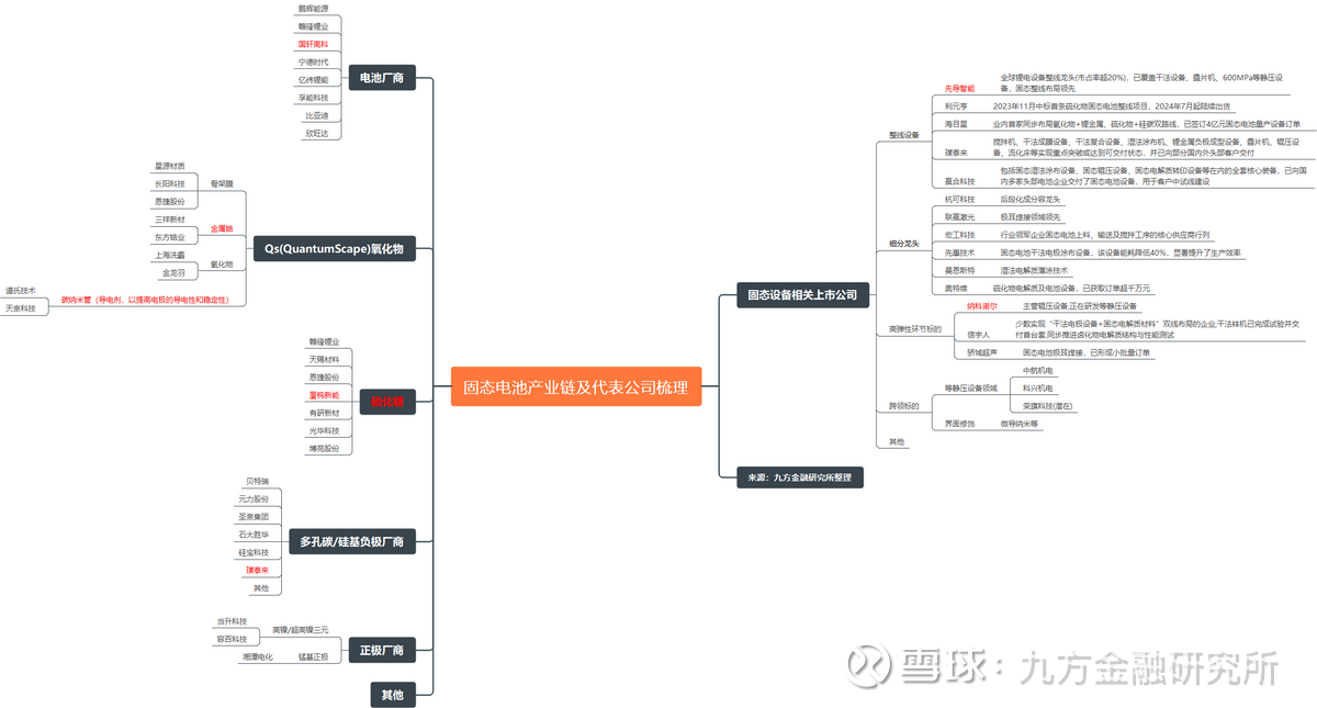 固态电池产业化逐步落地,各环节相关上市公司如下: