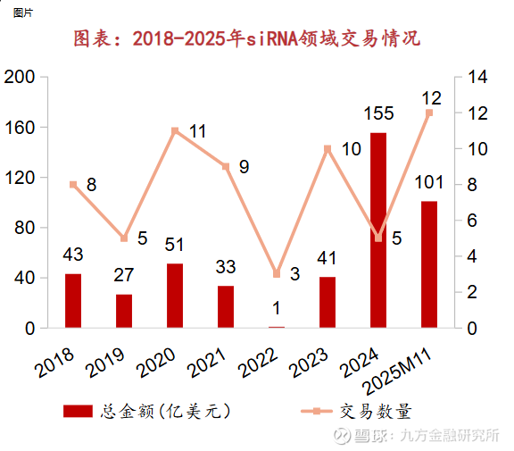 同时,小核酸赛道景气度高、BD交易活跃,2018年至2025年11月14日,siRNA领域累计交易额超450亿美元,全球MNC药企持续加码布局,行业长期成长可期。