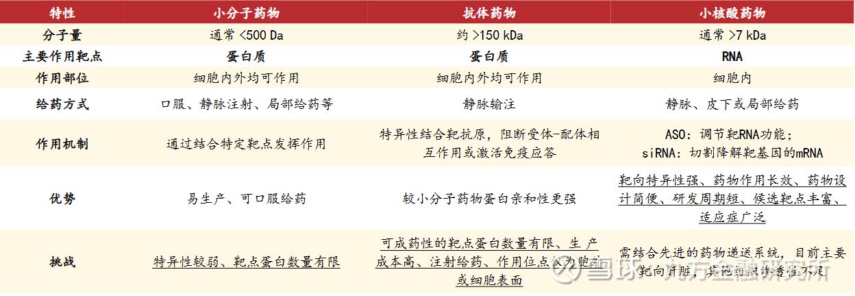 表:小分子药物、抗体药物、小核酸药物比较