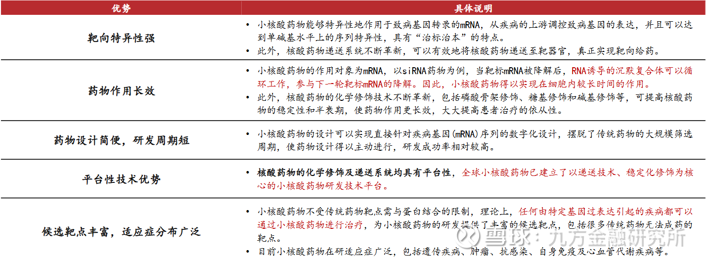 表:小核酸药物的主要优势
