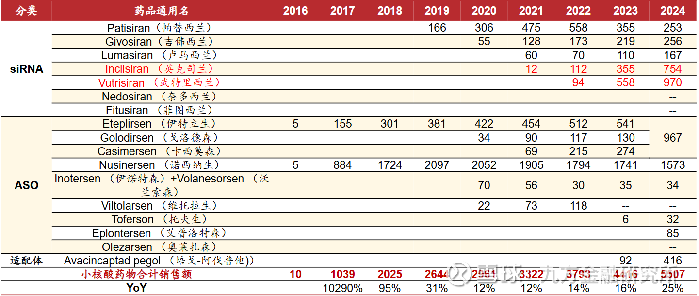 表:小核酸药物上市以来销售情况(百万美元)