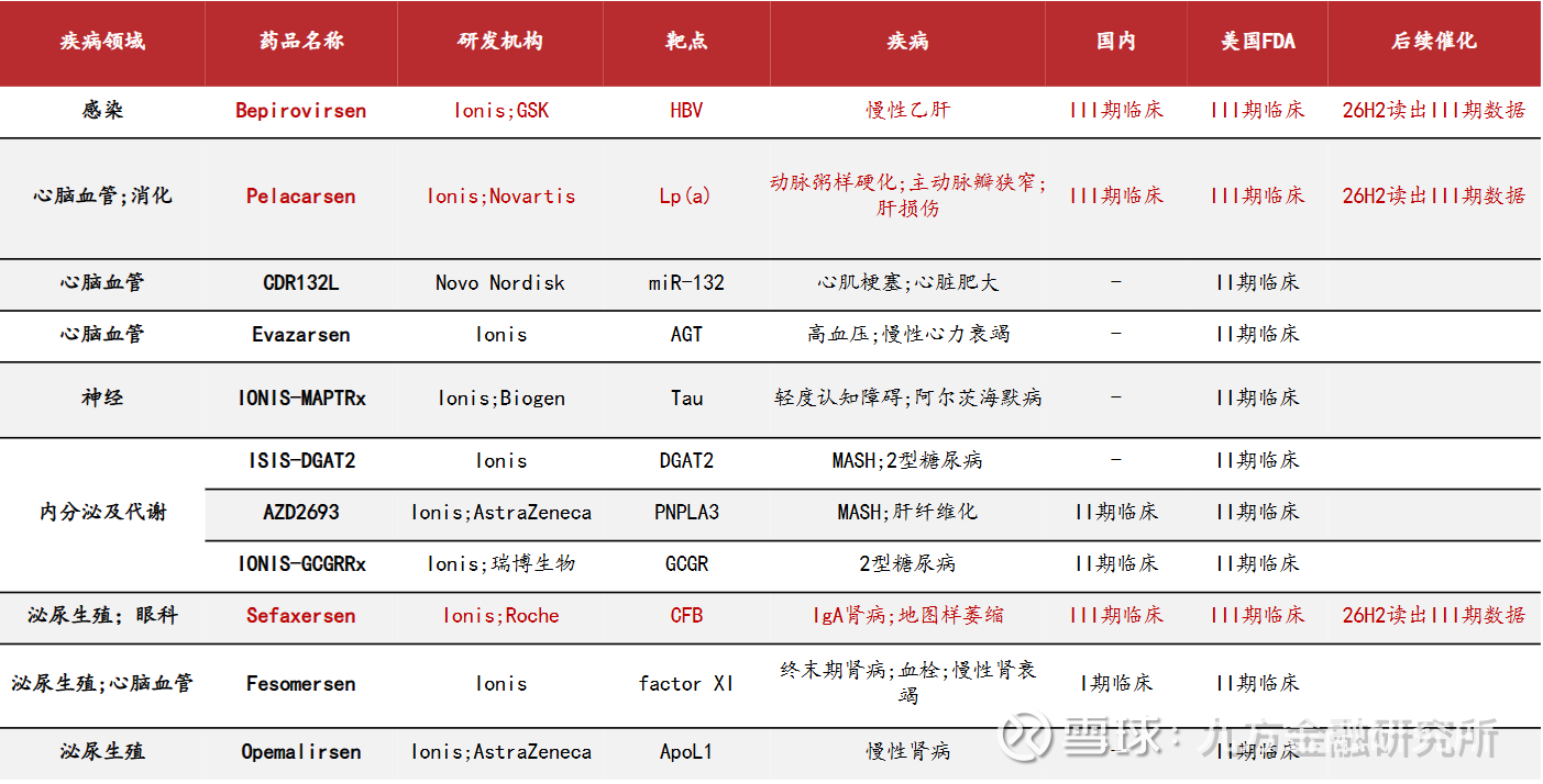 2.4、全球临床进展靠前的siRNA和ASO重点品种,静待数据读出