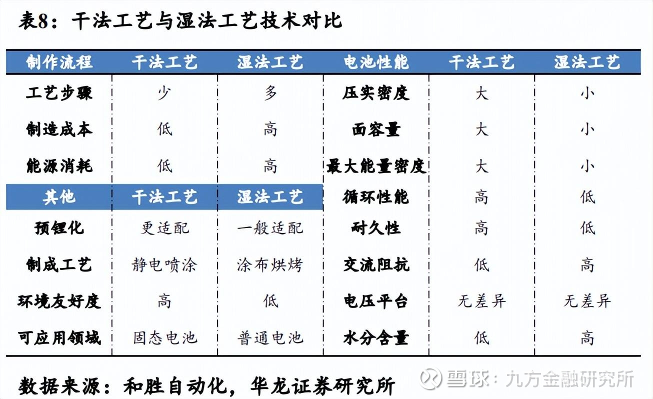 由于全固态电池采用全新的材料体系与电池结构,在锂电池制造前中后段的生产工艺均需调整,其中前段极片制造环节的核心变化是由湿法合浆和涂布技术转变为干法电极技术。