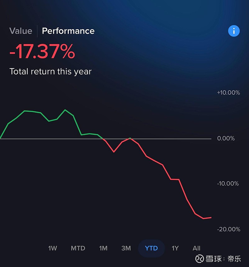 这个逻辑也不错,因为当时也没有看到其他的机会,但拿着现金收利息感觉有点是在浪费机会。我前不久还在跟claude聊,claude也建议我减仓,因为回撤会很惨。而且我还有一些几个月后过期的期权。股票和期权一算,这占比还是太多了。这个我也知道,但还是没有怎么减仓。大不了就熬下去呗。我一开始是冲着20b市值的,它早已超过那个了,但它的财报一直很好。加上没有看到想加仓的目标… 就那样了。
