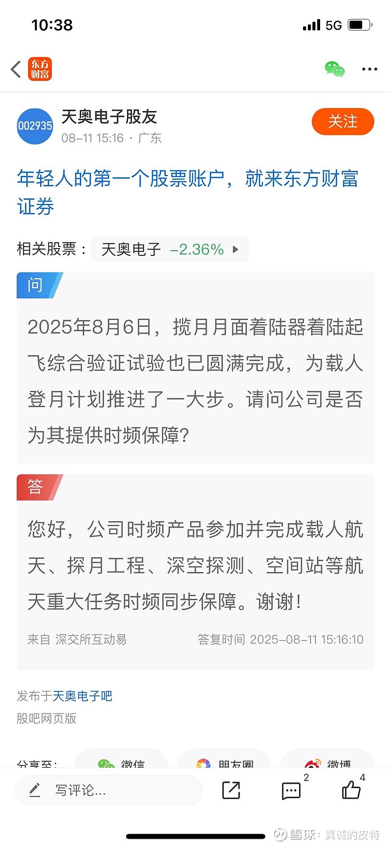 是绝对正宗的深空经济概念股。公司回复上明确说了原子钟用于卫星导航,深空探测,商业航天。时频产品用于火箭发射。