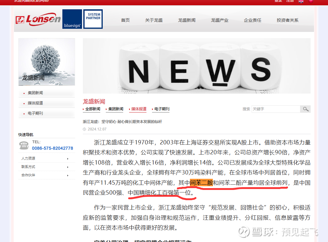 下面两图显示,浙江龙盛间苯二胺年产量约6.5万吨,产量全球前列,中国精细化工百强第一位。