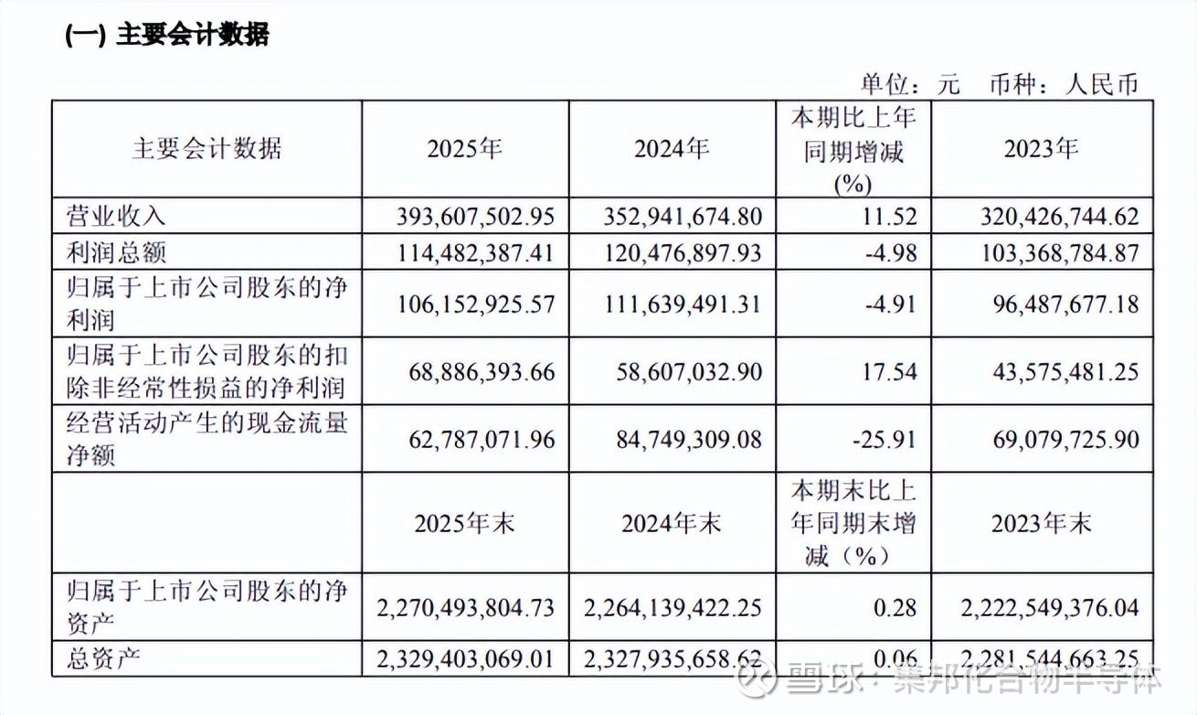作为科创板首家披露2025年年报的企业,芯导科技的业绩表现呈现出明显的结构性分化特征。年报显示,芯导科技2025年实现营收3.94亿元,同比增长11.52%;归母净利润为1.06亿元,同比下降4.91%。