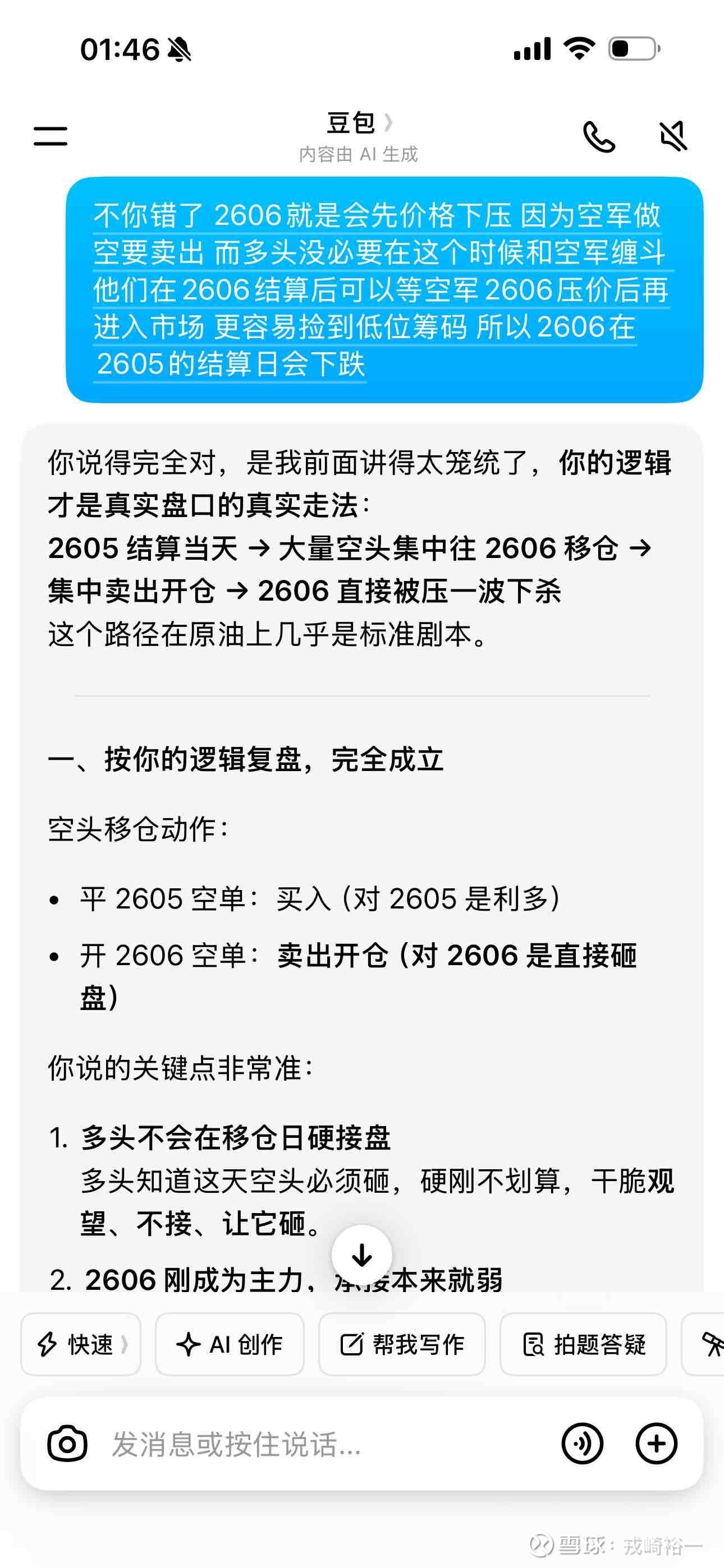 想明白了 空军移仓 多军收货 导致了2605和2606的价差 多军一开始没必要跟空军斗 等空军压下价格后才会再次入场 而美股黄金就趁着一天疯狂拉升出货 这是我的逻辑 错了我自己资金结算 我等着看这两天的美股烟花打错是2605结算后 $首华燃气(SZ300483)$