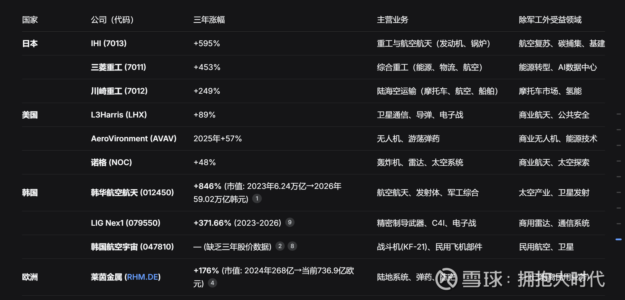 先看图。过去三年,日美韩欧,军工股风起云涌大涨。