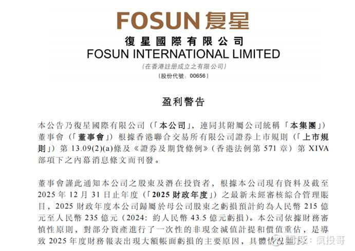 翻译成大白话:这是账面游戏,不是真金白银的流失。是把那些陈年旧账、历史包袱,一次性摆在台面上晒干净。复星这两年一直在喊“瘦身健体”,这回算是来了把大的——洗完澡,身上清爽了。