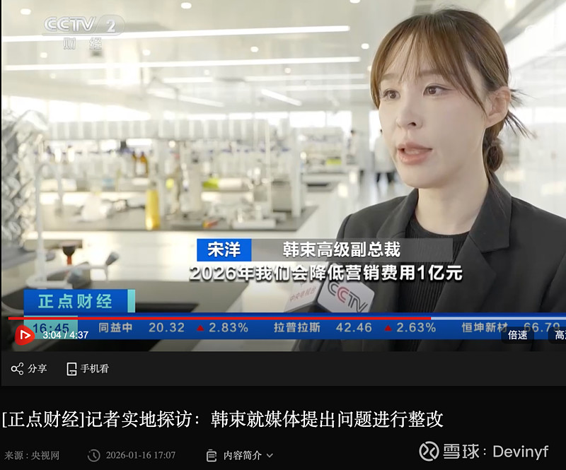 韩束又上央视了 上个月敲了一闷棍,这回算是给个甜枣