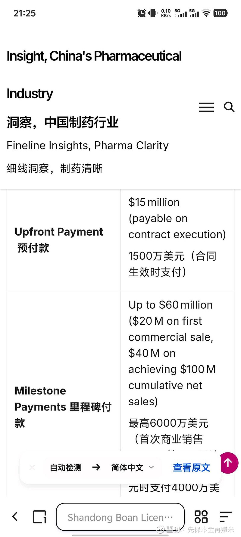 $博安生物(06955)$ 报道博安生物与健友股份此次合作首付款为1500万美元的外媒是Fineline Cube。该媒体在2025年12月10日的报道《Shandong Boan Licenses US Rights for Denosumab Biosimilars to Nanjing Kingfriend in $75 Million Deal》中,详细披露了这笔交易的财务细节,不仅明确协议生效时健友股份需支付1500万美元首付款,还提及最高6000万美元的里程碑付款规则,比如首款产品实现商业销售时支付2000万美元、累计净销售额达1亿美元时再支付4000万美元,同时标注了15%-20%的分级年度净销售额提成等合作条款。不知道报道的内容是否为真,博安每次都不公布金额,但是既然有了报道需要进行辟谣或者默认。