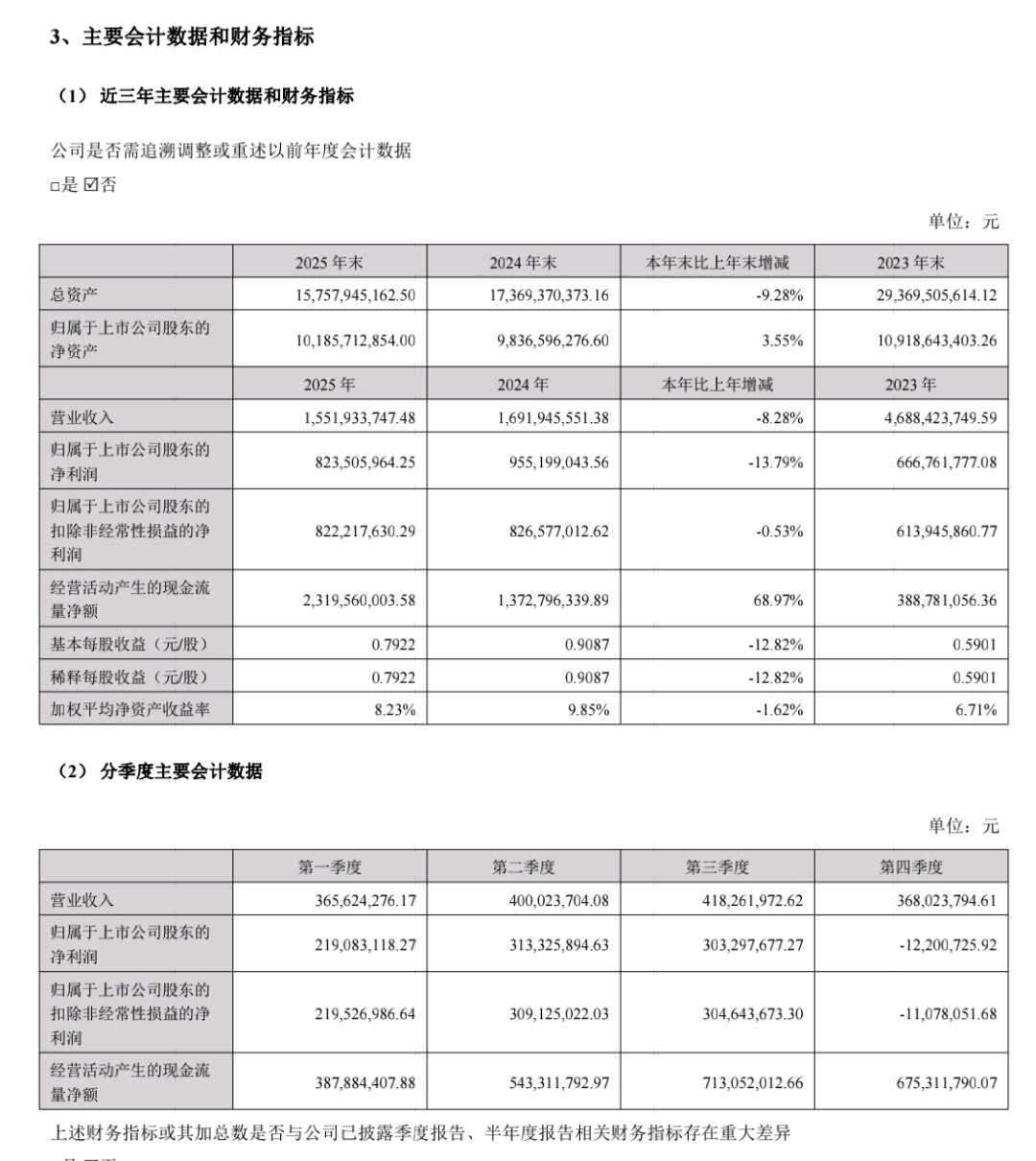 3季度分布:虽然第四季度单季归母净利润为 -0.12亿元(亏损),但前三季度已累计盈利8.36亿元。全年2.40亿元的减值损失是在全年逐步确认的,并非全部集中在四季度。