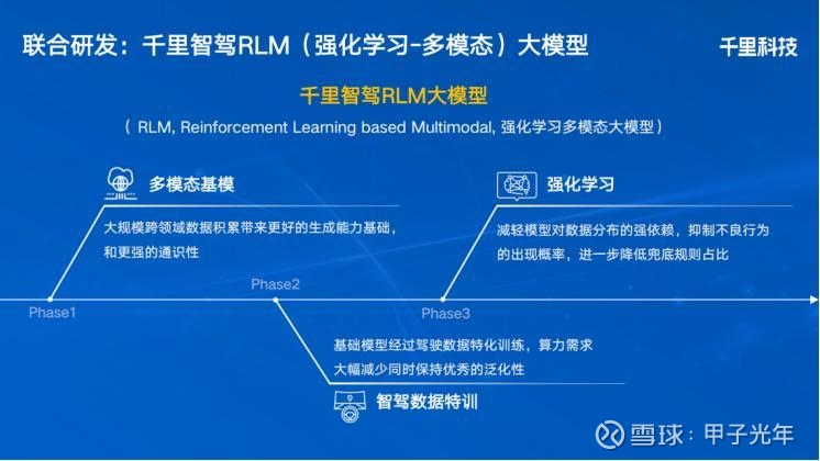 横向来看,千里科技推出了千里智驾RLM大模型,全面覆盖基础大模型训练、智驾数据特训,以及强化学习三个密切相关的环节。