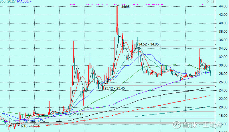 现在位置,距离高开缺口还远,28附近有前底比较近,120日线附近。俩支撑位。