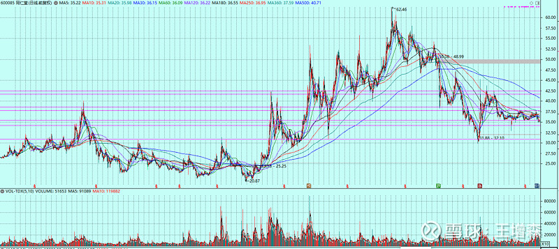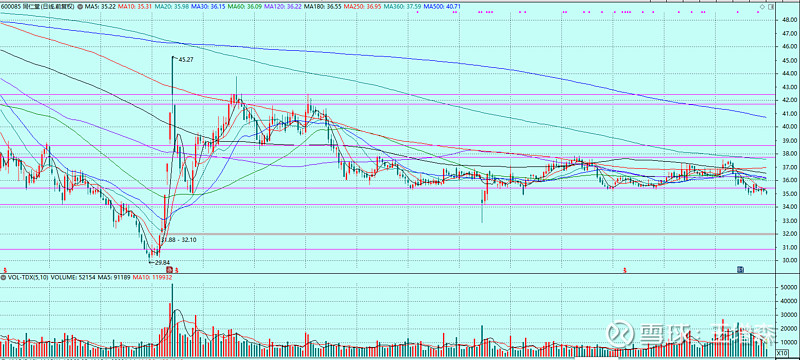 $同仁堂(SH600085)$ “长跌首浪待升底”。现在位置,35.5附近,多底已久,视为铁底。最近小幅跌破,疑似要出双底。可以试试运气。