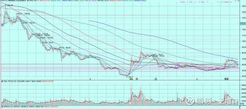 现在回调过程中,进入前期顶部以下。60附近还有60+250+360日均线。继续缩量。还是可能出现反弹的。