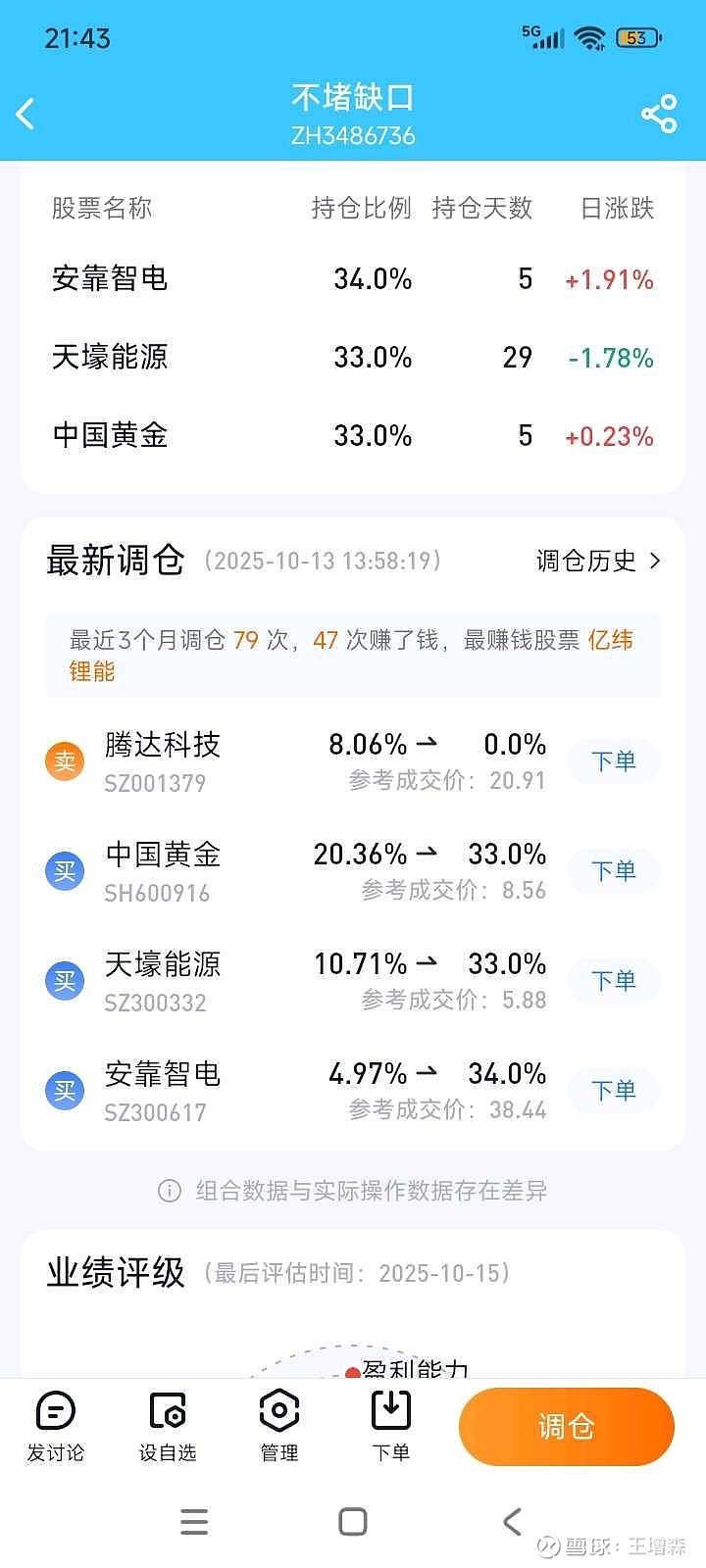 不堵缺口组合里,10月13清掉换股了。结果,隔了一日,涨停板。这就是没眼光。