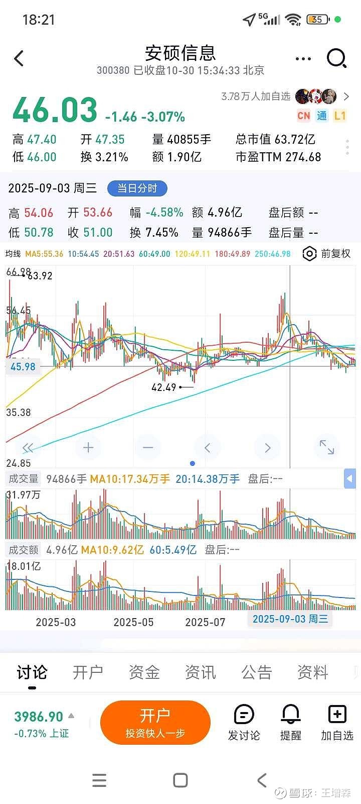 46附近一大堆历史位。今天回调,地量。没看到空头肆虐的信号。