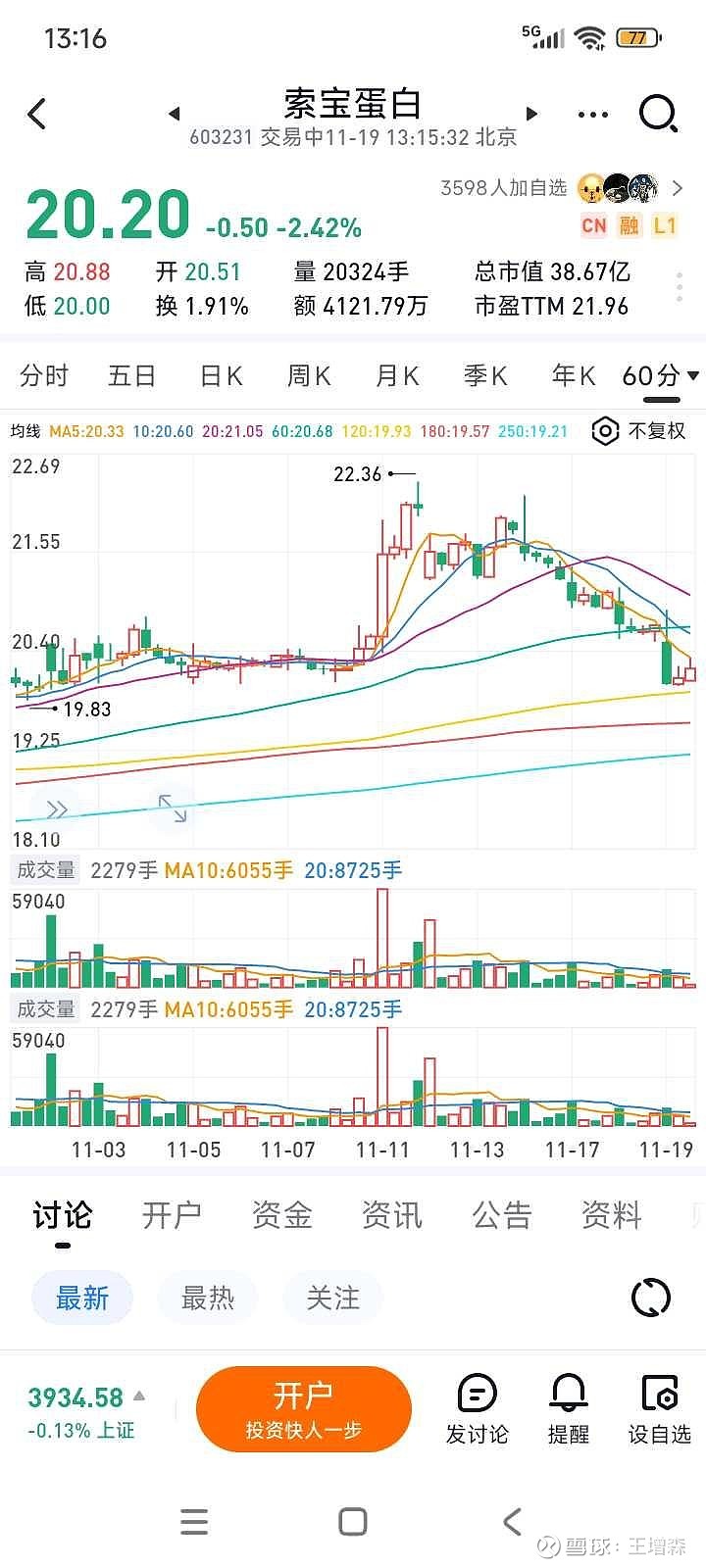 $追板试验(ZH3470501)$ 索宝蛋白,明显的时线空头信号,没有操作。持仓到今天,白白遭受折磨。最近有点心理异常。股指给了空头信号,没减仓。个股给了空头信号,没操作。今天到较强支撑位,观望是否靠谱,会不会出现强反弹。#王三亿的痛苦教训#
