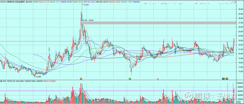 昨天夸过掌阅科技“上涨有量回调无量”,今天涨势还可以,突破了近期23附近铁顶,成交比前一日轻微放量。虽然是连续二日爆量,盘中走势还可以。