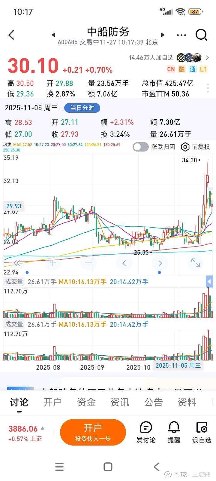 $中船防务(SH600685)$